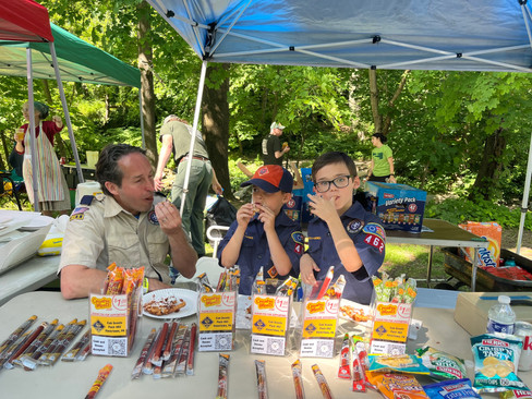 We had some hiccups in our planning as the new Delco Health Dept. made it slightly more challenging to sell unpackaged food. So we veered away from soft pretzels, which always pale in comparison to the Troop's funnel cakes anyway. We sold meat sticks and snack bags, but the key was the drinks. Our neighboring troops both sell food so their customers come to us for liquid refreshment.