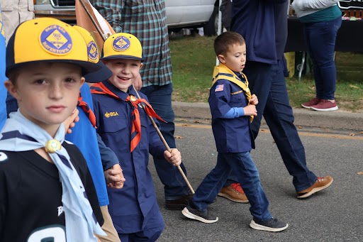 The change of dates hurt attendance a bit, but we still had a good showing as we marched down Darby from Oakmont to the Skatium. Along the way we tried to maintain structure behind our legacy banner that goes all the way back to the Valley Forge Council days. Valley Forge and Philadelphia councils merged in 1996 so you know that lovely piece of fabric predates anyone on this site's history page. It's seen better days, but we're going to be sad whenever it decides to retire. We had a guest visit from Queens NY, he wasn't in uniform. At least not our uniform. Meanwhile Chef Rich was slinging sausages for 7 hours in a row, while Pastor Tim managed to help set up, then go do his day job sermonizing and such, then bounce back around to help grill egg sandwiches and maintain a table for both the Pack and the church. Those are the real superheroes. They help our kids get this experience. Together with the help of all volunteers, we had a successful fundraiser and showed once again why Scouts is a great part of our community. Give me a 4. Give me a 6. Give me a 2. We are... PACK 462!!!