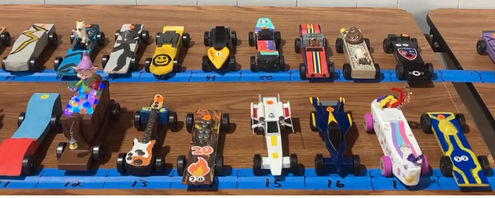 The boys got to race against a total of 60 scouts from 10 packs across the region. It was different due to a metal 4-lane track instead of our wooden 3-lane option. Winners were determined by lap times instead of heat placement. They each raced in every lane and the average of the 4 races was compared vs. everyone else. We didn't end up in the Winner's Circle, but Hunter was darn close to finishing top 5. He must have lost by hundredths of a second. We can't figure it out honestly and are awaiting the official list. He mostly finished in 3:12 area and the #5 car averaged 3:13 so maybe one off race dragged him out of contention. Meanwhile Colin and Gus had improved results on the metal track but more inconsistency. The Best in Show winner was an aircraft carrier with multiple decks and play-doh somehow involved. It deserved it. Another one looked like Dopey dwarf in a glowing minecar. Another had an audio component. Very creative, cool to see other people's ideas.